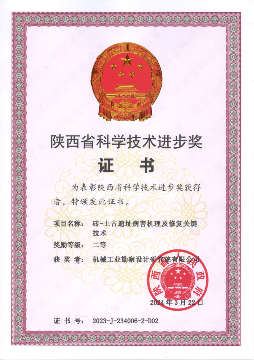 機(jī)勘院進(jìn)一步對(duì)古建筑在強(qiáng)地震或長(zhǎng)期振動(dòng)影響下的性能退化評(píng)估、振動(dòng)傳播機(jī)制、容許振動(dòng)標(biāo)準(zhǔn),以及加固控制技術(shù)進(jìn)行了系統(tǒng)性研究。經(jīng)權(quán)威專家評(píng)審,總體已達(dá)到國際先進(jìn)水平,特別是在磚木結(jié)構(gòu)的抗震與振動(dòng)控制方面,更是領(lǐng)先國際,樹立了新的標(biāo)桿,在此基礎(chǔ)上形成的成果榮獲了2019年陜西省科技進(jìn)步一等獎(jiǎng)。