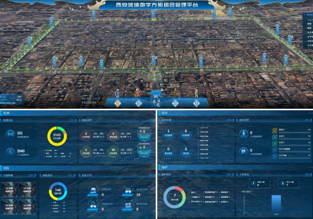 機(jī)勘院憑借在西安城墻領(lǐng)域的深厚積累與研究成果,被行業(yè)專家譽(yù)為城垣類保護(hù)的典范?;谶@些成果,機(jī)勘院文保院進(jìn)一步提煉轉(zhuǎn)化,構(gòu)建了以“數(shù)字方艙”為核心的綜合管理平臺(tái)。通過“一個(gè)數(shù)據(jù)底座”與“一套管理平臺(tái)”的緊密互聯(lián),實(shí)現(xiàn)了城墻隱患排查、監(jiān)測(cè)研判及預(yù)防性保護(hù)成果的高效整合與應(yīng)用,覆蓋了四大核心保護(hù)場(chǎng)景。這一創(chuàng)新舉措不僅充分挖掘了數(shù)據(jù)要素的巨大潛力,更彰顯了科學(xué)技術(shù)對(duì)文物事業(yè)發(fā)展的強(qiáng)大支撐作用。
