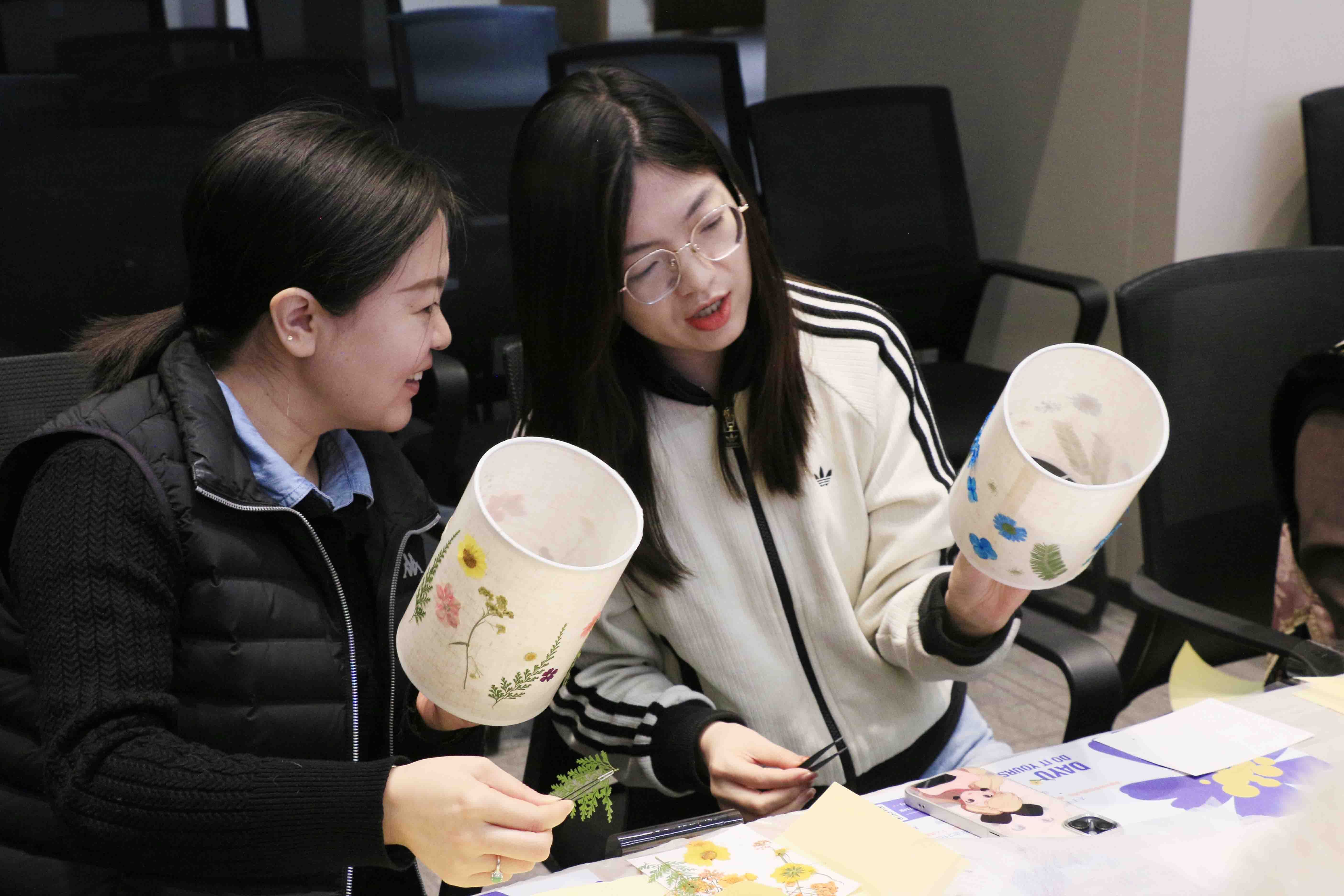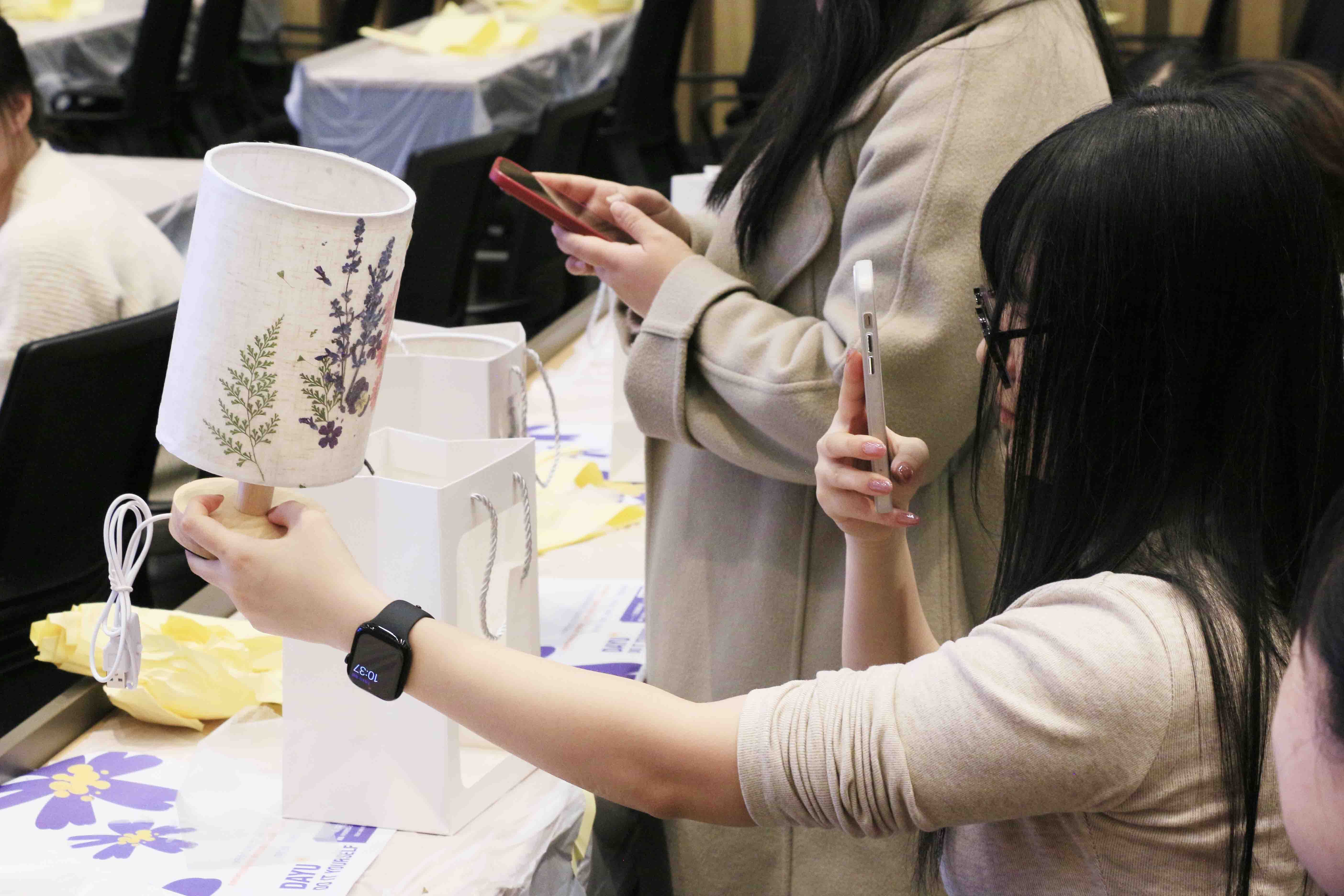 在沉浸式手作體驗環(huán)節(jié),女職工們化身“非遺傳承人”,通過挑選花材、構思設計、標本固定、覆膜封裝等步驟,將干花綠植與臺燈巧妙結合?,F場呈現出"春日繁花""星河爛漫"等各具特色的藝術作品,燈光亮起的瞬間,自然之美與人文匠心在光影中交織,展現出女職工們的細膩才情與創(chuàng)新活力。