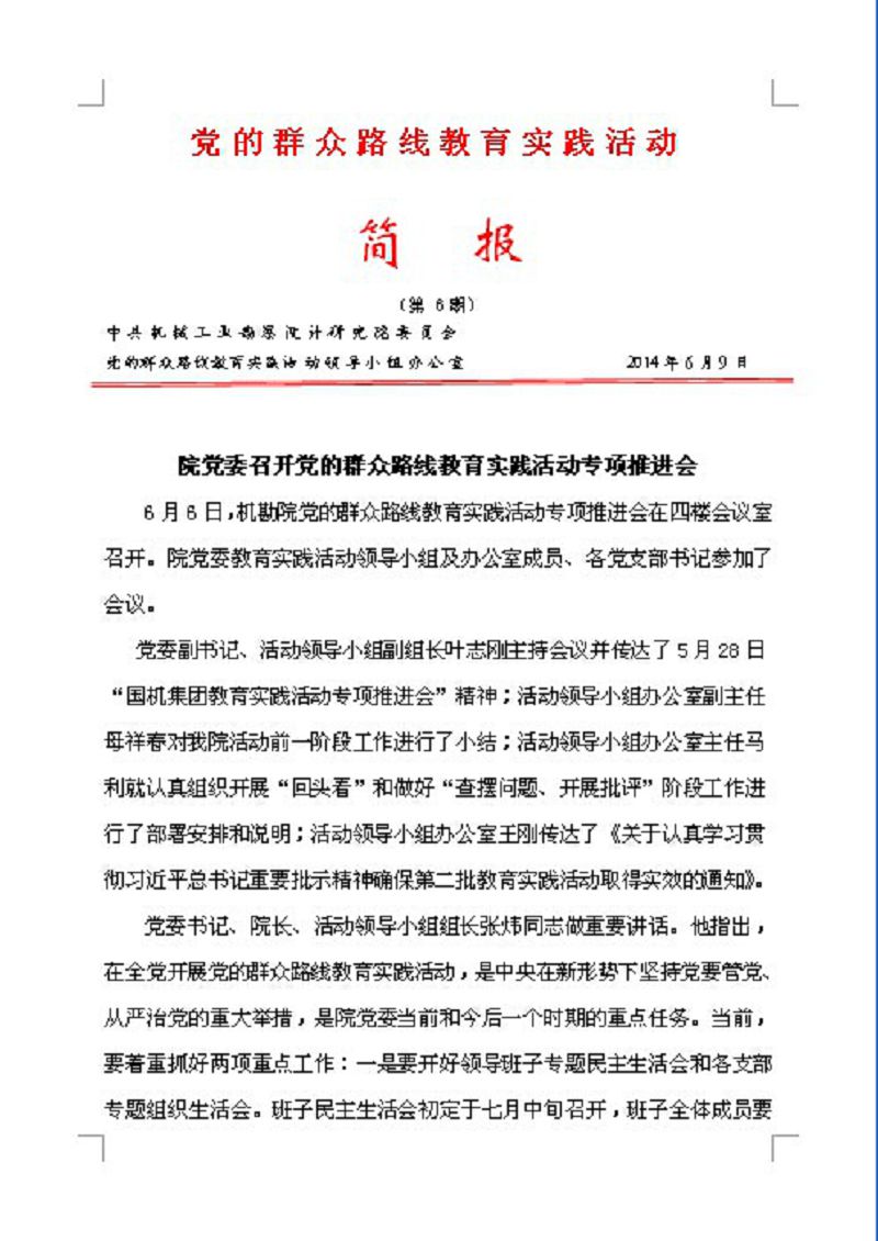 【概要描述】 6月6日,機勘院黨的群眾路線教育實踐活動專項推進會在四樓會議室召開。院黨委教育實踐活動領(lǐng)導(dǎo)小組及辦公室成員、各黨支部書記參加了會議。