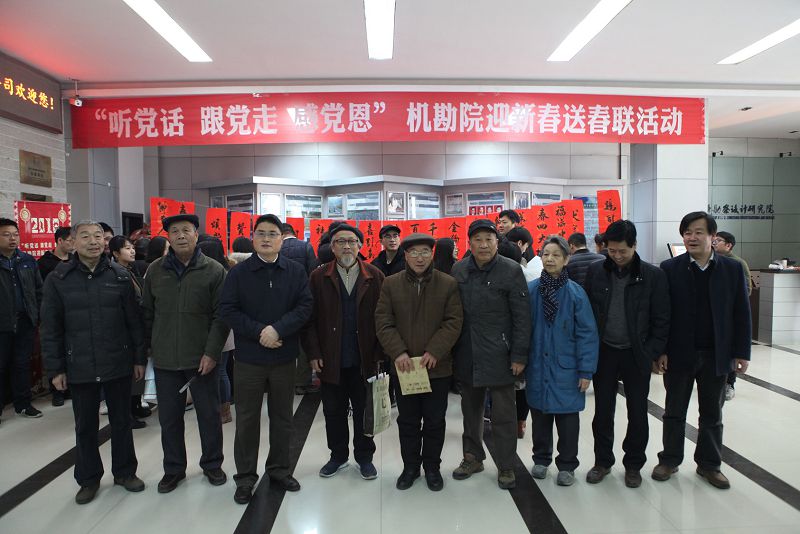 “春花含笑意,爆竹增歡聲”。每到春節(jié),寫對(duì)聯(lián)、貼春聯(lián)是中華民族的傳統(tǒng)習(xí)俗,為了繁榮我院春節(jié)喜慶氛圍,2018年2月7日上午,黨委工作部、工會(huì)、團(tuán)委主辦,機(jī)勘院書畫學(xué)會(huì)、陜西八仙書畫院協(xié)辦的送春聯(lián)活動(dòng)在一樓大廳舉行,活動(dòng)得到了職工們的一致好評(píng)。黨委書記黃玉明、工會(huì)主席張玉守出席活動(dòng)。