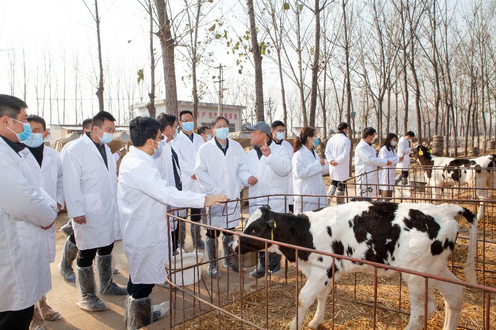 邵雪奎、楊瑞學(xué)一行在草灘集團(tuán)華陰奶牛養(yǎng)殖基地,參觀了胚胎實驗室、擠奶廳、犢牛島、泌乳牛牛棚,實地了解草灘集團(tuán)牧業(yè)發(fā)展、基地建設(shè)等方面成果,并就打造綜合性產(chǎn)業(yè)基地園區(qū)的規(guī)劃設(shè)想深入交換意見。
