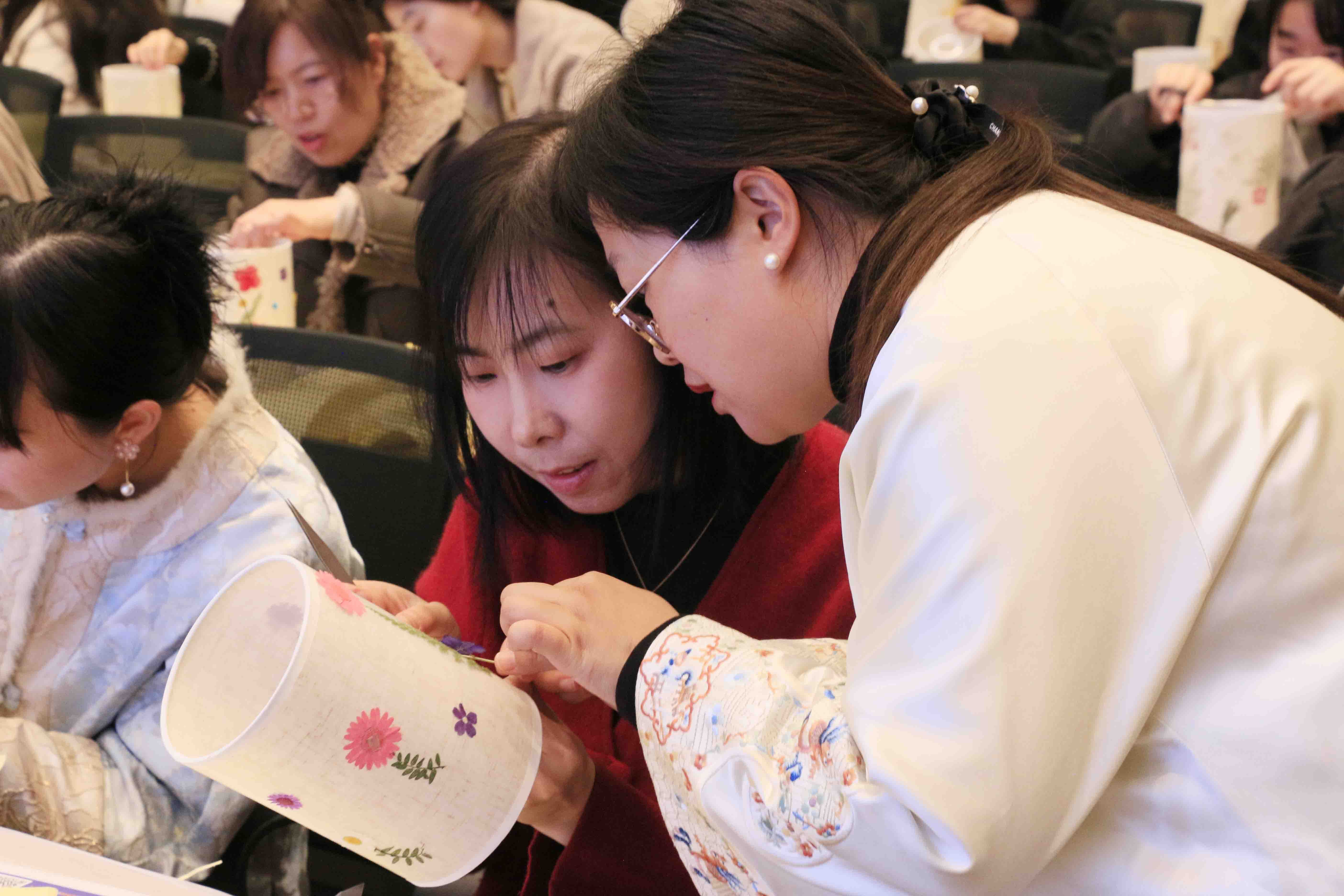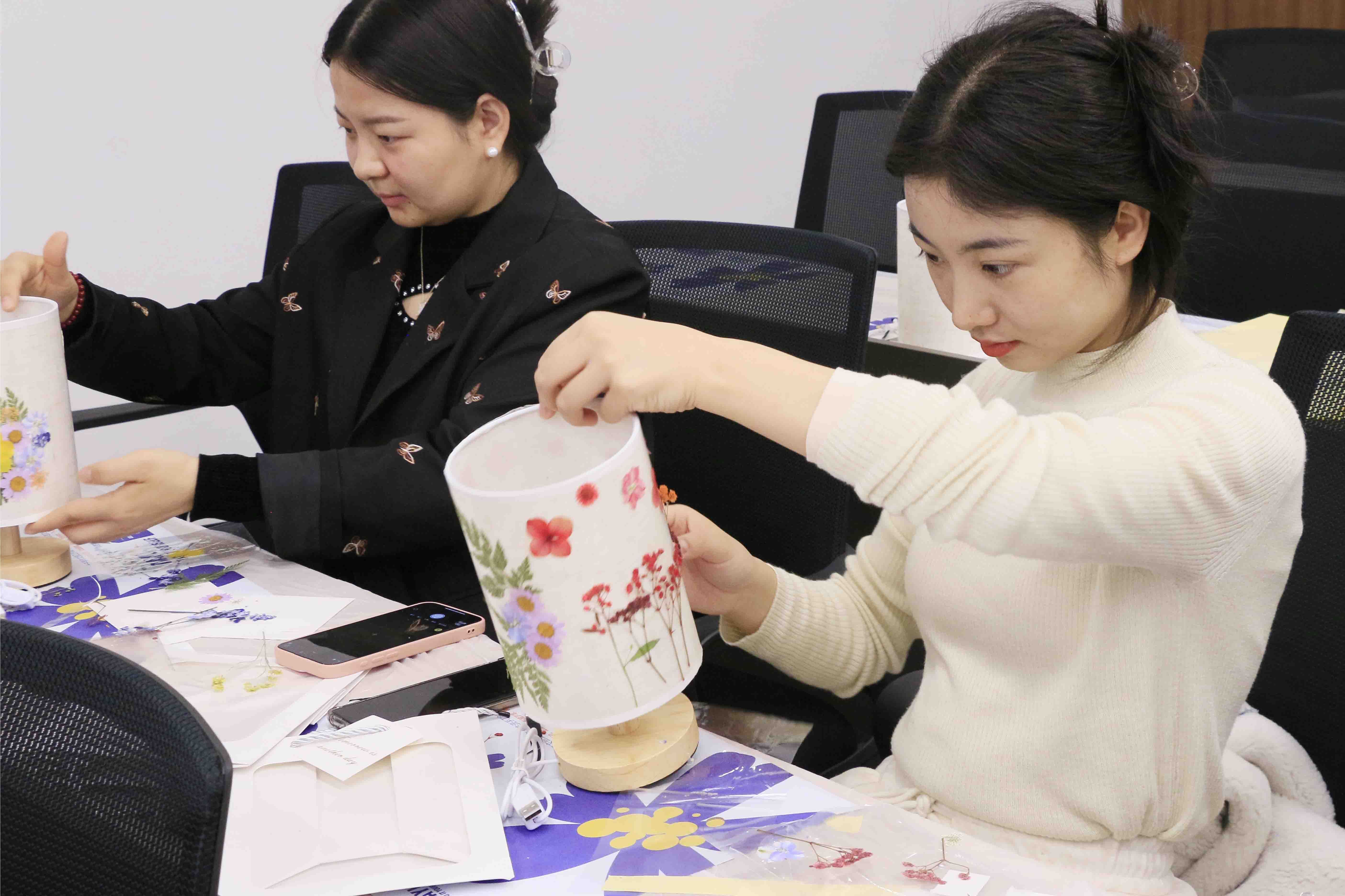 在沉浸式手作體驗環(huán)節(jié),女職工們化身“非遺傳承人”,通過挑選花材、構思設計、標本固定、覆膜封裝等步驟,將干花綠植與臺燈巧妙結合?,F場呈現出"春日繁花""星河爛漫"等各具特色的藝術作品,燈光亮起的瞬間,自然之美與人文匠心在光影中交織,展現出女職工們的細膩才情與創(chuàng)新活力。