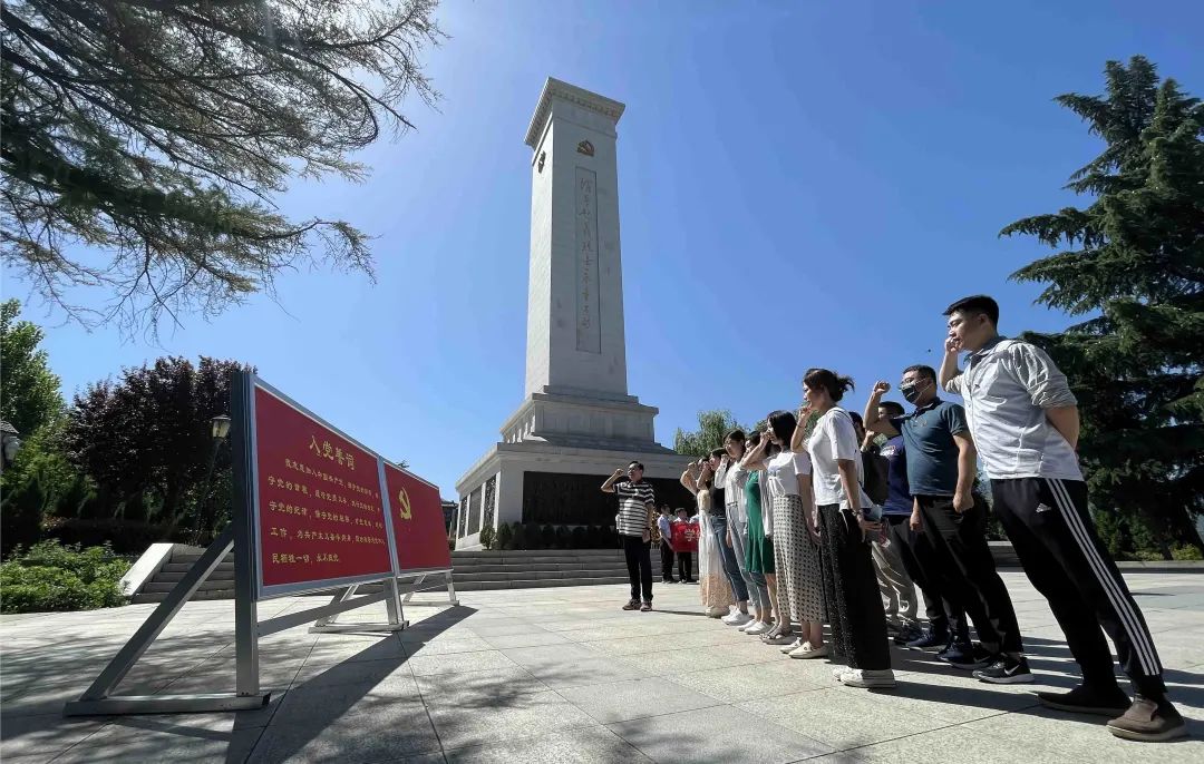 渭華起義紀(jì)念館蒼松翠柏,綠水環(huán)繞。在英雄紀(jì)念碑前,全體黨員肅穆佇立,深切緬懷革命先烈的豐功偉績和崇高精神。在支部書記李有峰帶領(lǐng)下,面對鮮紅的黨旗,舉起緊握的右手,重溫入黨誓詞。