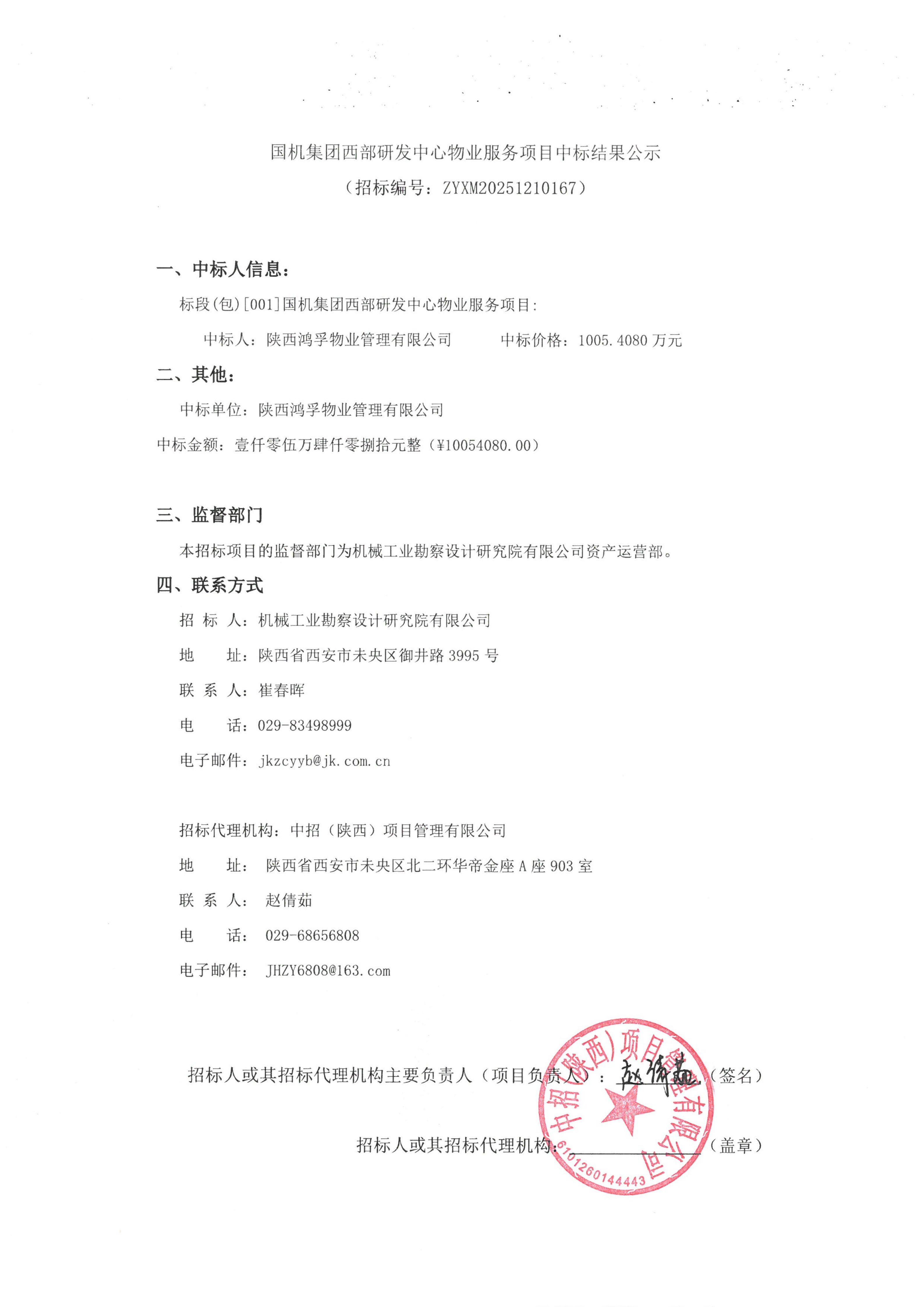 國(guó)機(jī)集團(tuán)西部研發(fā)中心物業(yè)服務(wù)項(xiàng)目中標(biāo)結(jié)果公示